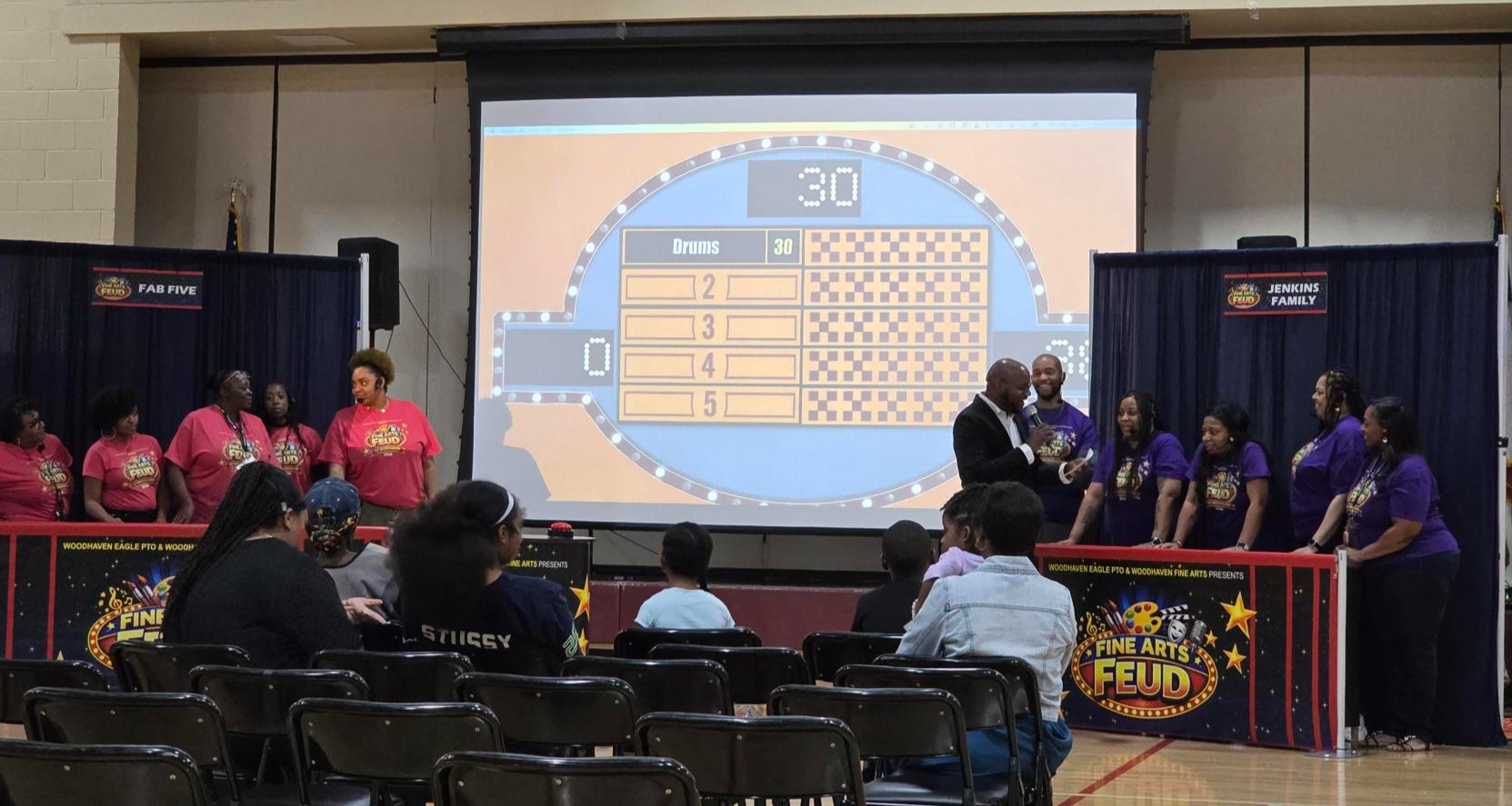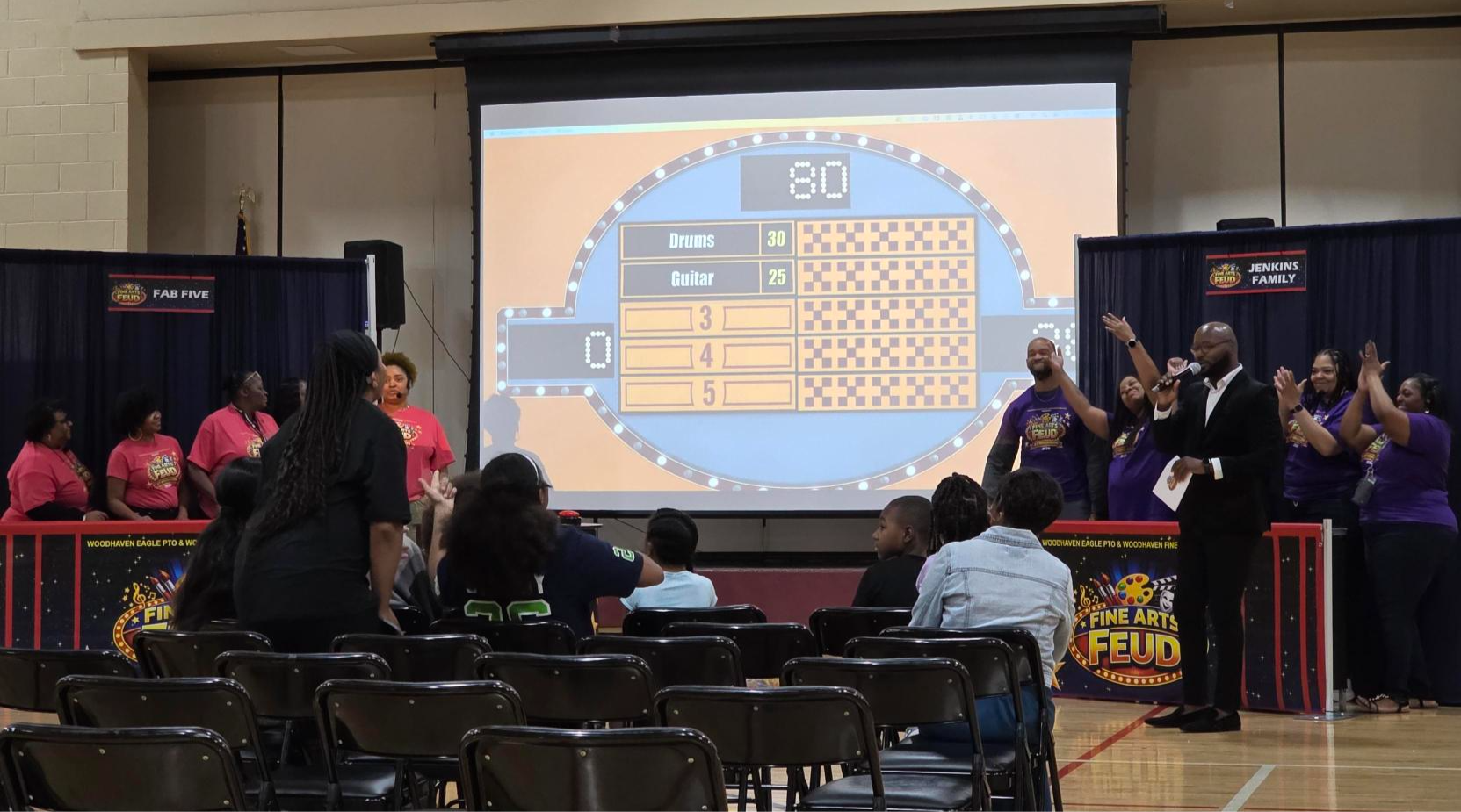 Inquire now to bring the energy of Fine Arts Feud LIVE to your stage. From school fundraisers and church gatherings to corporate team-building events, we host high-octane trivia that celebrates creativity and brings communities together through the arts.